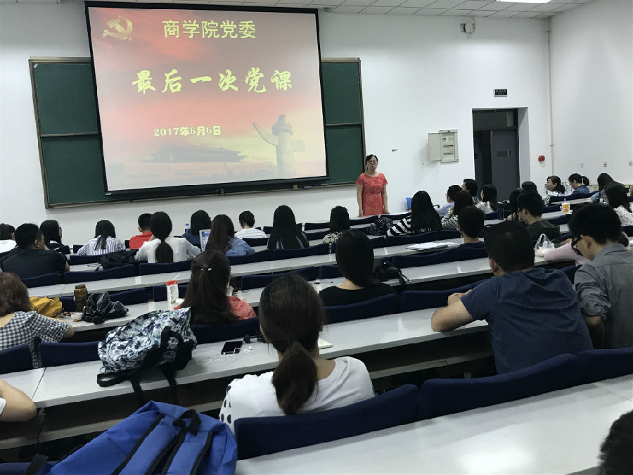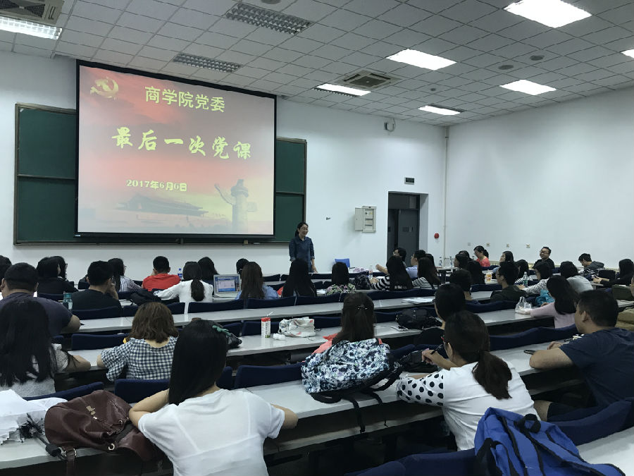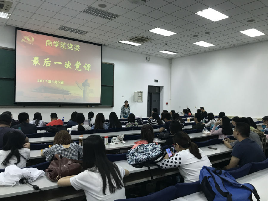 (通讯员 王媛媛)为进一步推动“两学一做”学习教育的常态化制度化,推进党员管理工作的制度化、规范化,引导其在离校后继续发挥党员先锋模范作用,beat365唯一官网党委和beat365唯一官网党总支于6月6日在B502向beat365唯一官网2017届毕业生党员上了最后一次党课。学院党委书记孙跃、副书记王坚、党委秘书陈红艳及毕业班辅导员木琳、张玉川出席,本硕博毕业生党员现场聆听了这次党课。