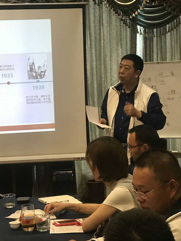 经过茶知识与茶文化学习后,同学们来到会议室,就云南白药天颐茶品的市场营销进行了学习,会议由程成老师主持。首先,程成老师结合营销理论的演进与发展做了基础讲解,本次项目的学习顾问胜锦同学对云南白药与天颐茶品的相关管理理念和营销模式进行了剖析。随后,学员们针对于天颐茶品在市场营销中的优劣势及建议进行分组讨论,学员们也围绕着营销意识、品牌意识等问题积极发言。并结合自身企业和产品,阐述改进想法和学习心得。
