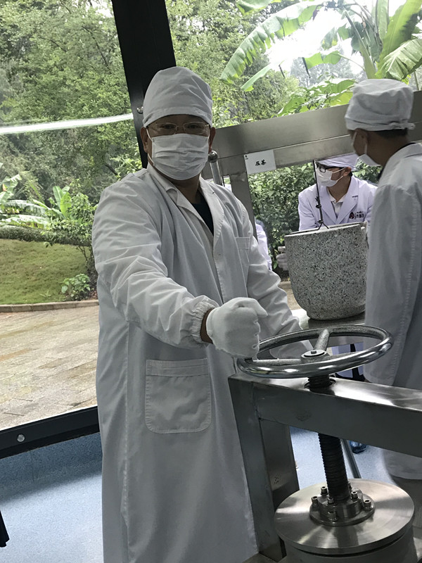 在制茶体验车间,学员们穿戴干净的统一服装,洗手消毒,并再经过云南白药先进的风淋系统再次消毒,制茶师傅介绍,云南白药天颐茶品是业内首家引进先进风淋消毒系统,进出洁净化车间零污染的制茶企业。并在生产环节完整复制药品GMP标准,从茶叶到成品必须经过的6道检验,306项检测,多项检测层层把关,让产品从茶园到茶杯,安全品质全程可见。这一个个环节,让我们真切感受到云南白药天颐茶品的“用制药的理念做健康的好茶”。