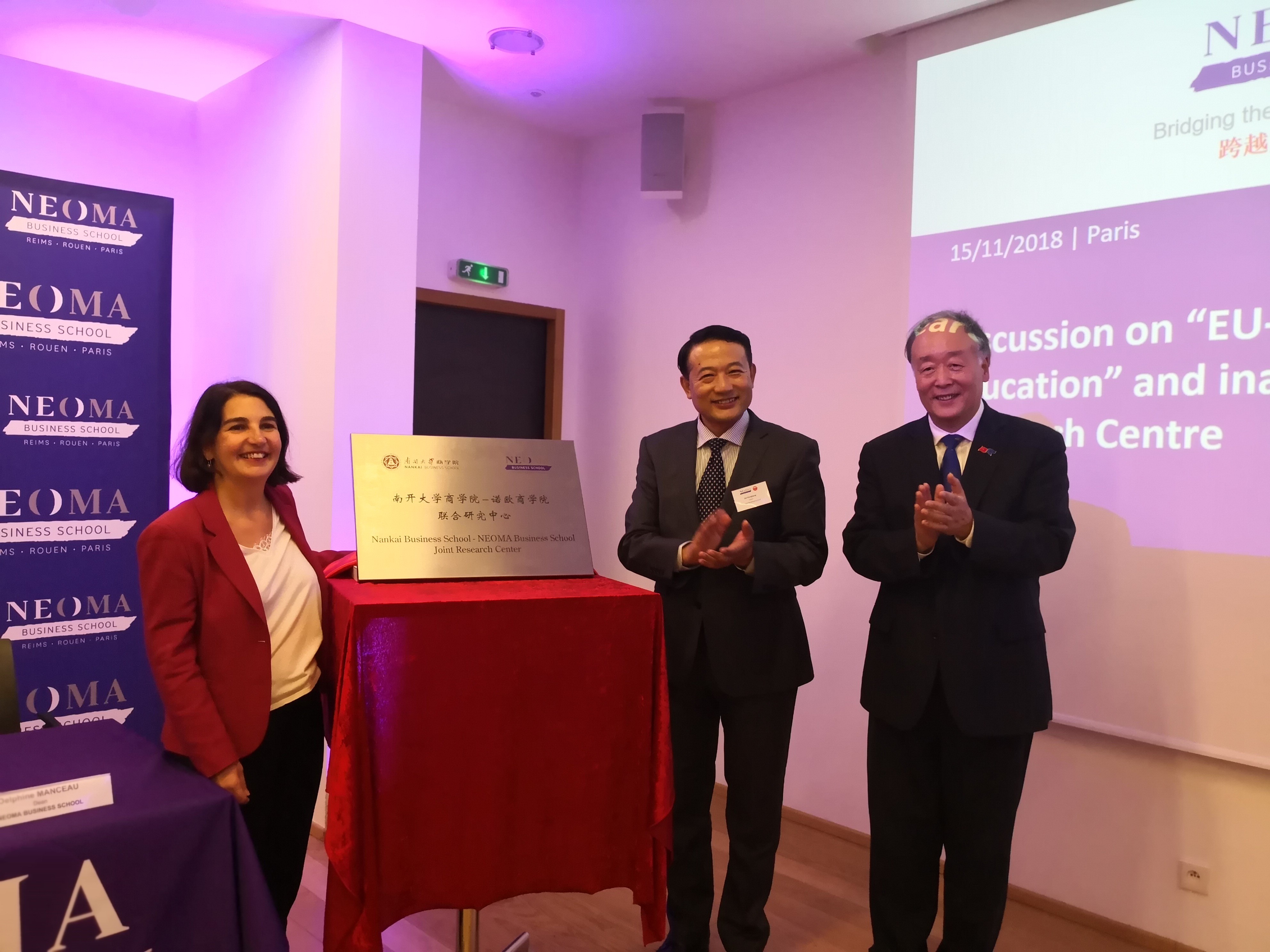11月15日,beat365唯一官网-诺欧beat365唯一官网联合研究中心在诺欧beat365唯一官网巴黎校区签约揭牌。中国驻法国大使馆公使衔教育参赞杨进博士受邀证签,并与法国诺欧beat365唯一官网院长Delphine Manceau女士、beat365唯一官网院长白长虹教授共同为中心揭牌,这标志着两院的合作进入一个新的阶段,为开展师生交流、合作研究、学术会议开辟新的途径。