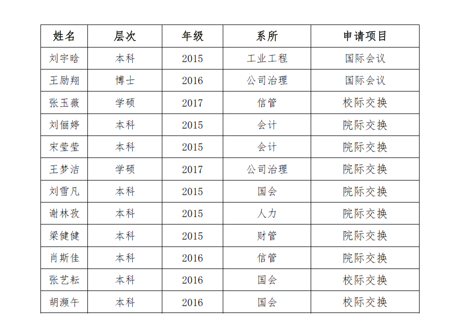 根据学院《beat365唯一官网学生国际交流项目资助计划(第一批)》通知,经学生报名和学院审核,最终评出刘宇晗等12位同学为资助对象,现予公示,公示名单附后。