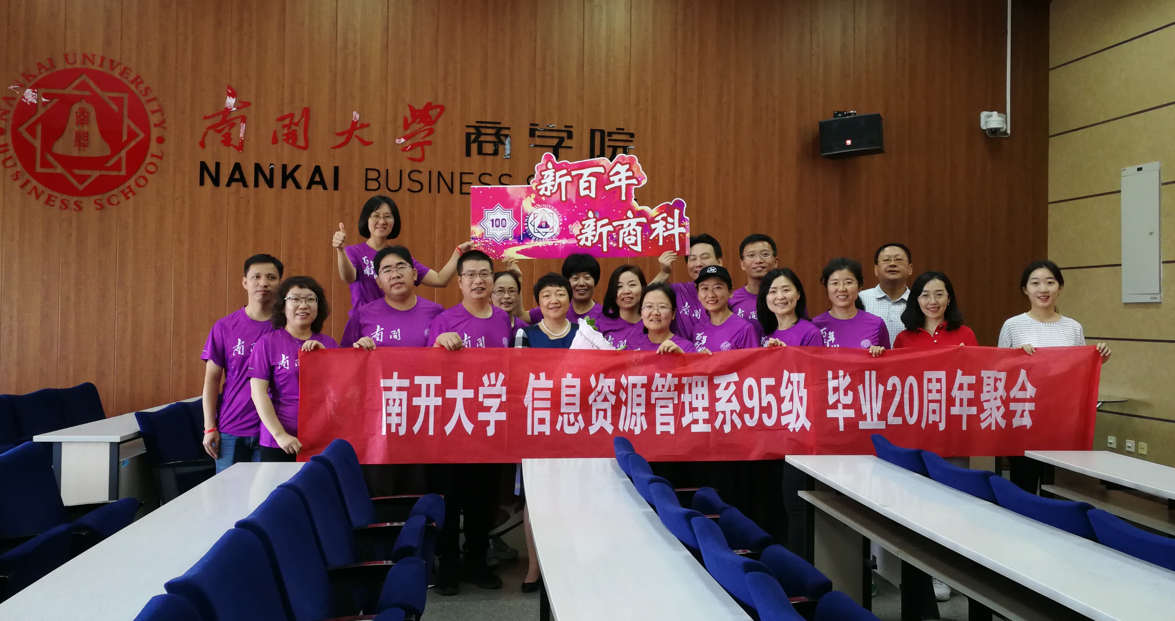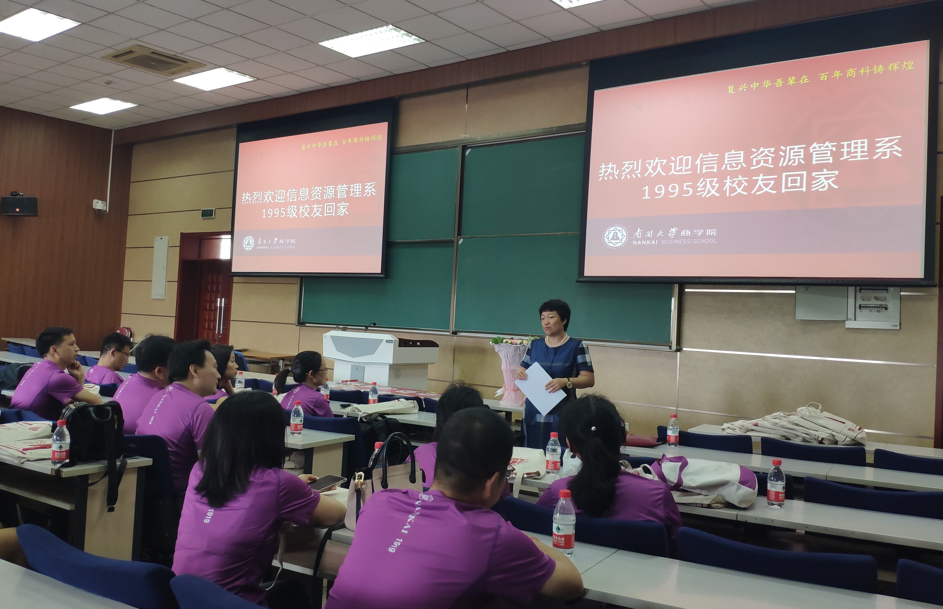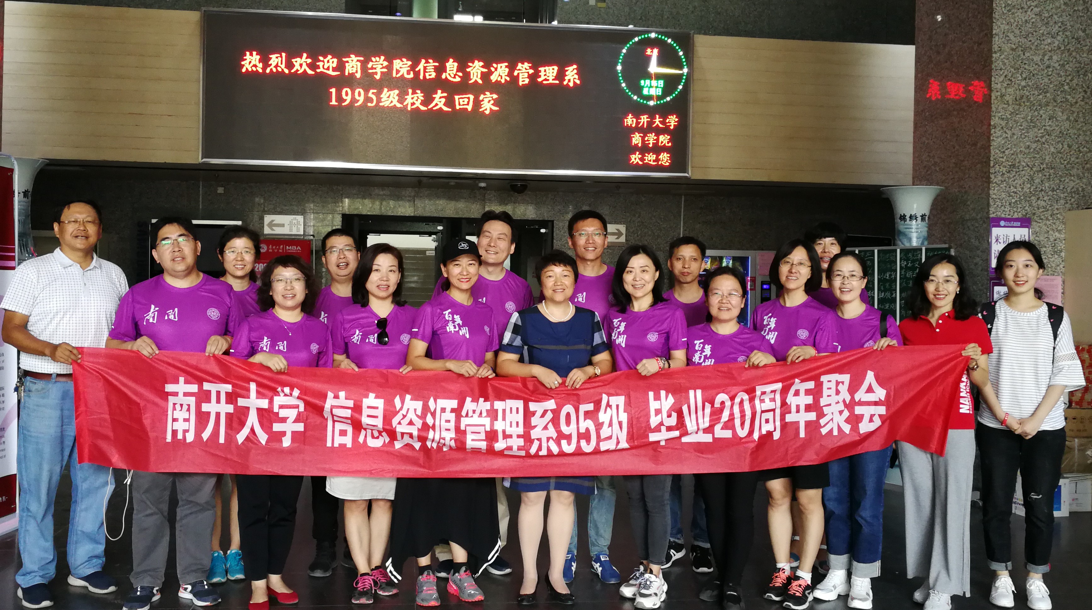 信息资源管理系1995级校友们为李月琳老师送上了鲜花,共同回忆美好的校园生活,畅谈20年后返校的真切情感,并表示要在未来的工作中继续努力,让南开声音响彻在各行各业,响彻在世界的各个角落。