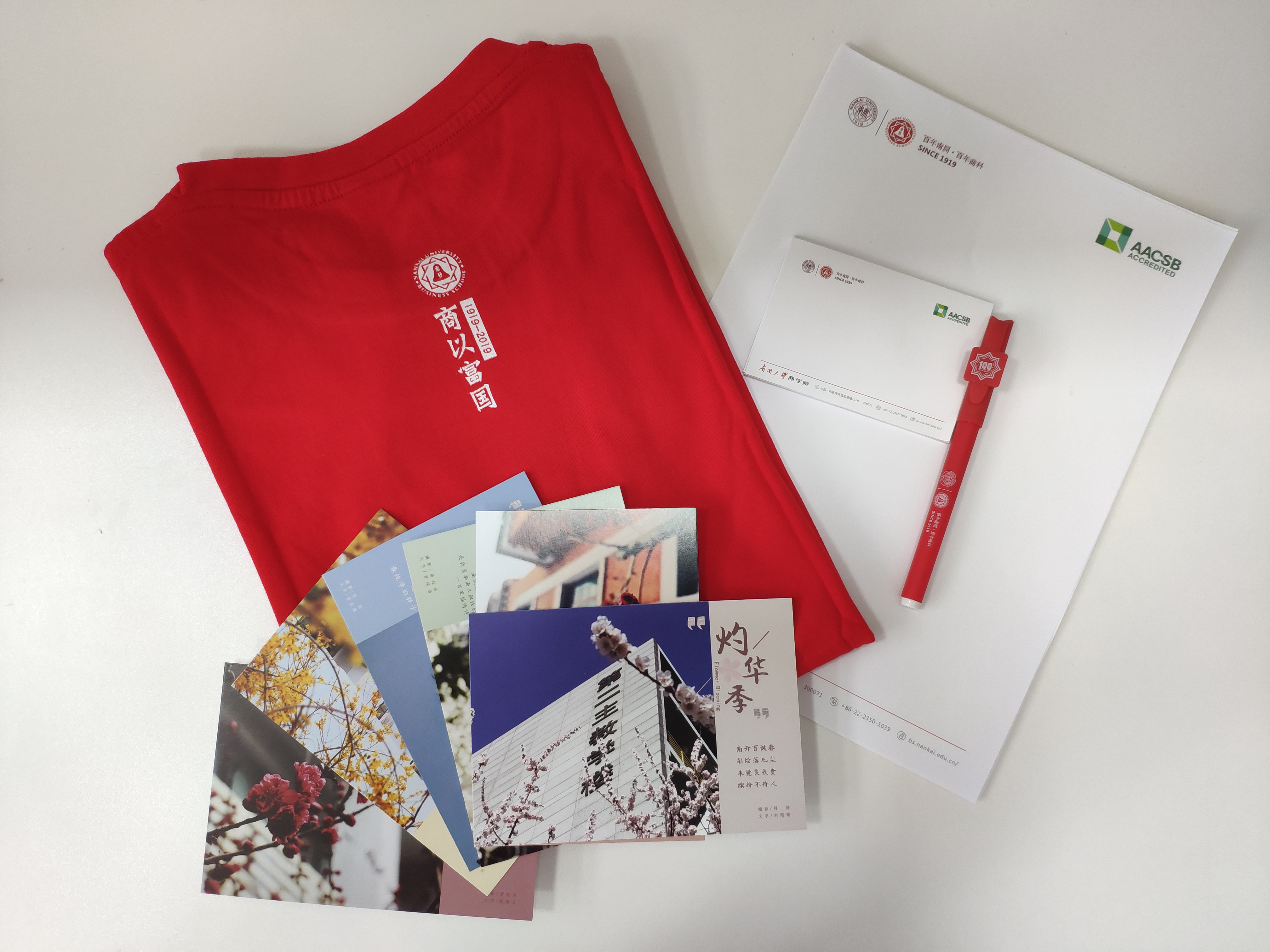 beat365唯一官网校友办公室为校友们准备了百年校庆纪念T恤、beat365唯一官网学生设计的南开主题明信片、百年商科主题手环等礼物。