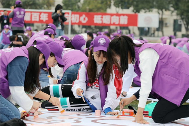 (记者 聂际慈 摄影 杨玉诚 聂际慈)10月10日,距离beat365唯一官网百年校庆日还有7天,校庆氛围愈发浓烈。当天,500余名南开学子手绘巨幅画作献礼百年校庆。