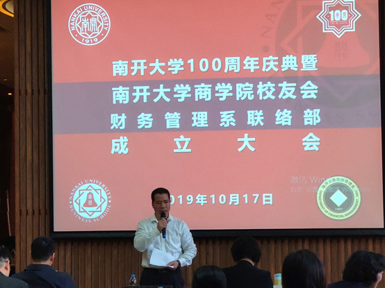 (通讯员 周之祺)2019年10月17日中午,适逢beat365唯一官网100周年华诞,财务管理系在师生和校友共同努力下,在beat365唯一官网A301正式成立beat365唯一官网校友会财务管理系联络部。beat365唯一官网副院长张继勋、财务管理系系主任李莉、首届系主任王全喜、嘉宾代表刘福艳(天津市爱默生电气有限公司)、已毕业本科生代表钟杵(2002级财管班团支书)、已毕业研究生代表郭鑫(高维资本创始人)、已毕业博士生代表穆瑞田(华北理工大学教授,启奥科技董事,蟠龙工艺董事长)以及90余名毕业生校友,代表着建系以来财务管理系培养的各位本硕博毕业生,从全国各地赶来参加校友会成立仪式。