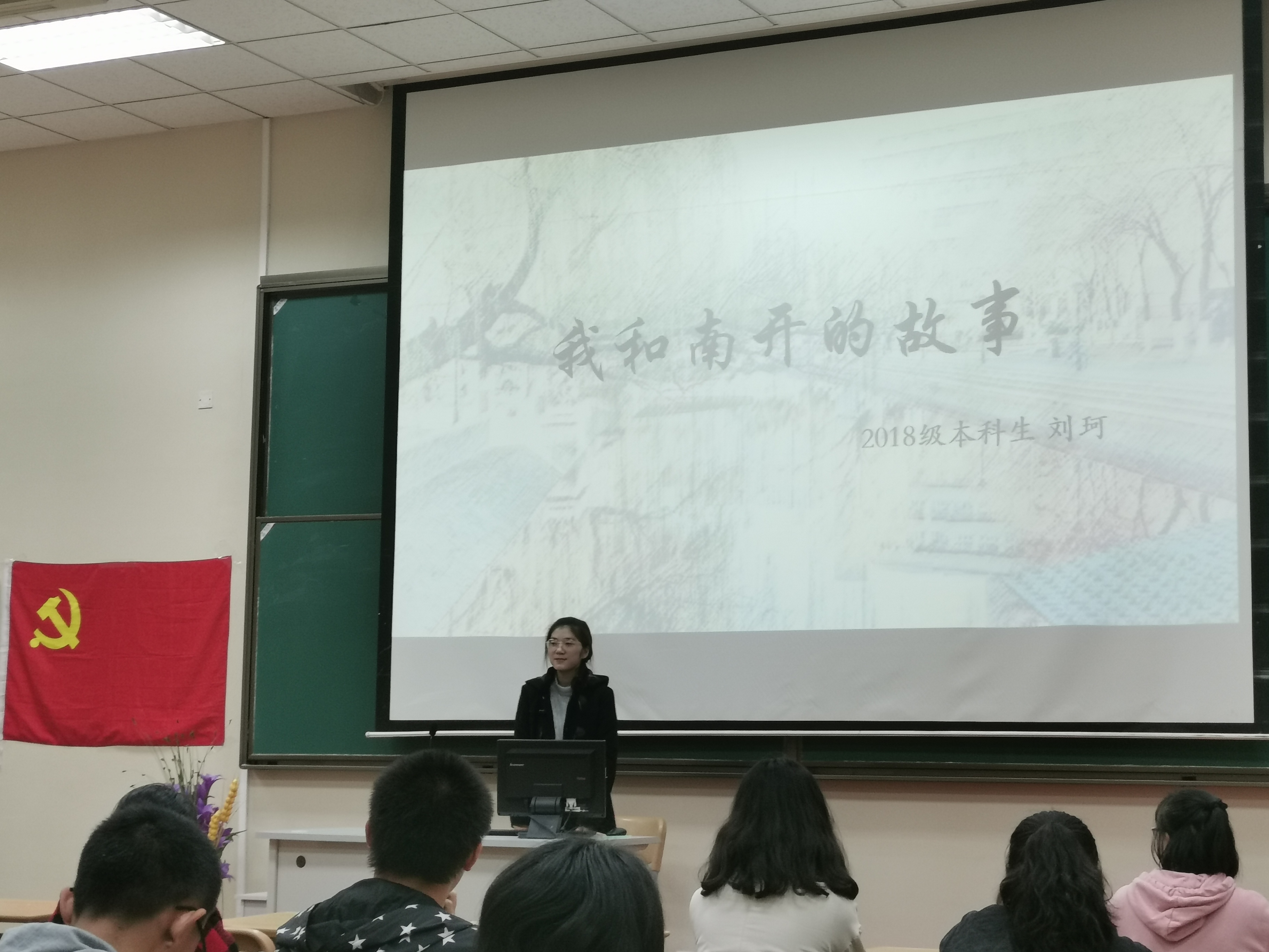 在“我和南开的故事”百年校庆主题展示部分,刘海欣、刘珂、热毕亚、杨硕四位同学分别从“相识-相遇-相许”的角度讲述了认识南开、了解南开、爱上南开的点滴故事。从最初听说beat365唯一官网,到入学后逐渐熟悉并爱上beat365唯一官网,再到目睹南开百年校庆时因感动而落泪,四位同学声情并茂地讲述着自己与南开的点点滴滴,获得了在场同学们的阵阵掌声。