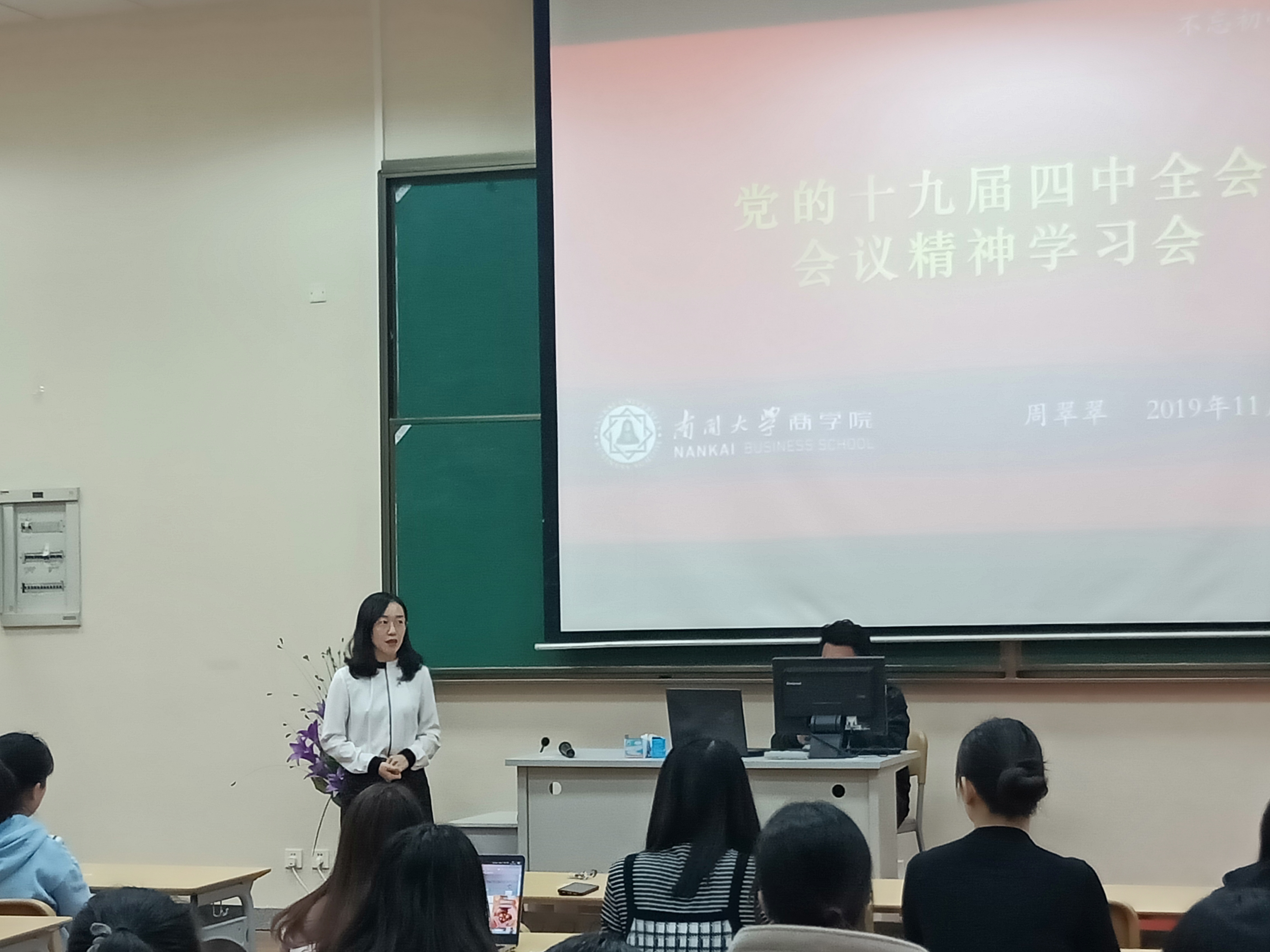 beat365唯一官网团委书记周翠翠为支部成员讲授了“党的十九届四中全会”会议精神主题微团课。周翠翠带领支部成员学习了党的十九届四中全会公报,深刻学习了《中共中央关于坚持和完善中国特色社会主义制度、推进国家治理体系和治理能力现代化若干重大问题的决定》中推进国家治理体系和治理能力的总体目标,13个显著优势以及13方面的具体要求。周翠翠指出“党和国家历来重要青年工作,全体青年团员作为党的助手和后备军,要认真学习、领会、贯彻、落实党的十九届四中全会精神,时刻铭记使命担当,不忘初心,砥砺前行!”。