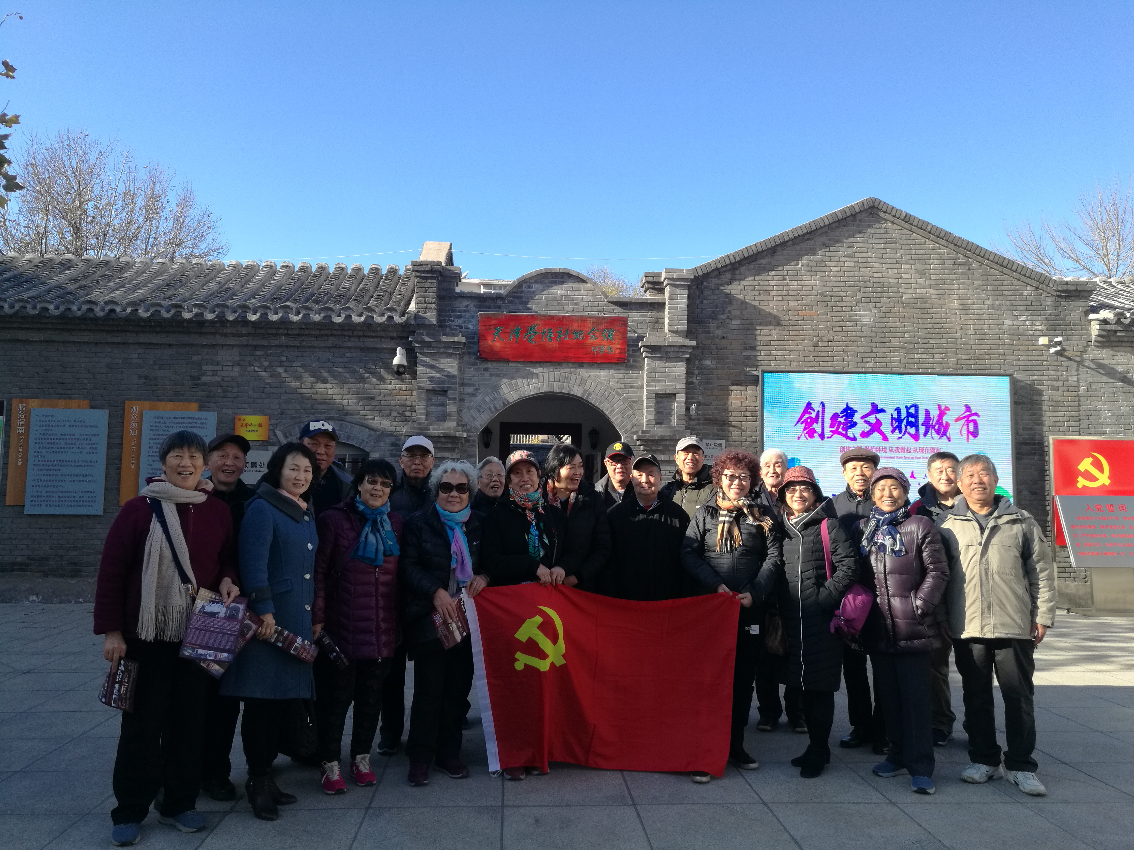 下午,党员同志们来到天津觉悟社纪念馆,它是一座建立在革命旧址上的红色纪念馆。在这里, 周恩来、马骏、刘清扬、邓颖超、郭隆真等天津学生运动的骨干在五四运动高潮中冲破封建束缚,联合起来,共同斗争,他们在这里研究新思潮,探讨救国救民的真理,积极参加实际斗争,成为当时天津反帝爱国运动的领导核心,在北方的革命社团中享有很高的声望。党员同志们重温了觉悟社的成长、斗争历程,进行了一次深刻的爱国主义教育。