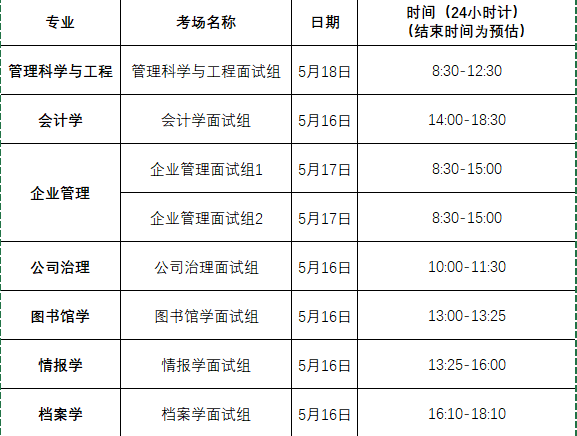 注:1.各考场结束时间为预估时间,具体复试时间段会通过飞书群公布;2.如因应疫情或网络等原因导致考试时间发生改变,飞书群内另行通知。