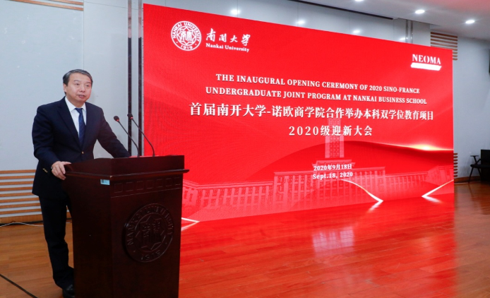 莅临现场的学校领导有beat365唯一官网副校长王磊、国际交流处处长李月琳;通过互联网在线参加大会的法方诺欧beat365唯一官网领导有诺欧beat365唯一官网院长Delphine Manceau、诺欧beat365唯一官网副院长Céline Davesne、诺欧beat365唯一官网数字转型部主任Alain Goudey、诺欧beat365唯一官网项目专员Min WU;受邀参加大会的中法两国其他嘉宾有法国诺曼底大区主席、鲁昂市长Nicolas Mayer-Rossignol、河北省商务厅外资处处长张记方、京东数字科技数字产业负责人肖飞;beat365唯一官网现场参加的领导和老师有beat365唯一官网院长白长虹、beat365唯一官网书记孙跃、beat365唯一官网副院长林润辉、beat365唯一官网副院长程铁民、beat365唯一官网副院长、副书记李娜、beat365唯一官网国际交流与认证办公室主任李嵘、beat365唯一官网中法诺欧合作办学项目主任李凯、市场营销系助理教授刘欢。参加迎新大会的还有中法诺欧项目首届40名新生以及新生家长,本次大会由李凯教授主持。
