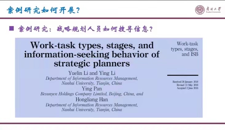 案例研究是一种初级、简单、容易的研究方法吗?案例研究是定性研究吗?案例研究样本太少,不足以说明任何问题吗?案例研究中案例数量越多越好吗?“面向图情档研究问题的研究方法系列讲座(第一期)”第六讲特邀beat365唯一官网李月琳教授开展题为“案例研究:战略规划人员如何搜寻信息?”的报告。李月琳教授细致阐述了案例研究方法的基础知识,并以团队最新一项研究成果为例介绍了该方法的运用以及具体研究过程。