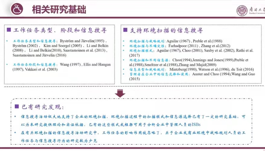 团队对相关研究进行梳理,发现:环境扫描与信息搜寻的研究为本研究提供了理论和实证依据,但该领域常常忽略工作任务及其特征对信息搜寻行为的影响,而本研究正可以弥补这一研究空白。