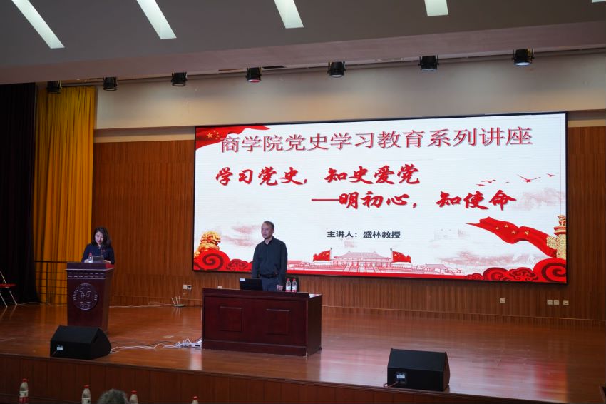 而后,马克思主义学院盛林教授为全院师生党员讲授《学习党史,明史爱党——明初心,知使命》的专题党课。盛林教授以党的十八大以来取得的历史性成就为切入,运用丰富案例史实,生动阐述中国共产党带领全国各族人民迎来从“站起来”、“富起来”到“强起来”伟大飞跃的百年奋斗史,深入剖析党的革命传统与优良作风,号召全体师生党员增强守初心、担使命的政治自觉,从党史中汲取奋进力量。