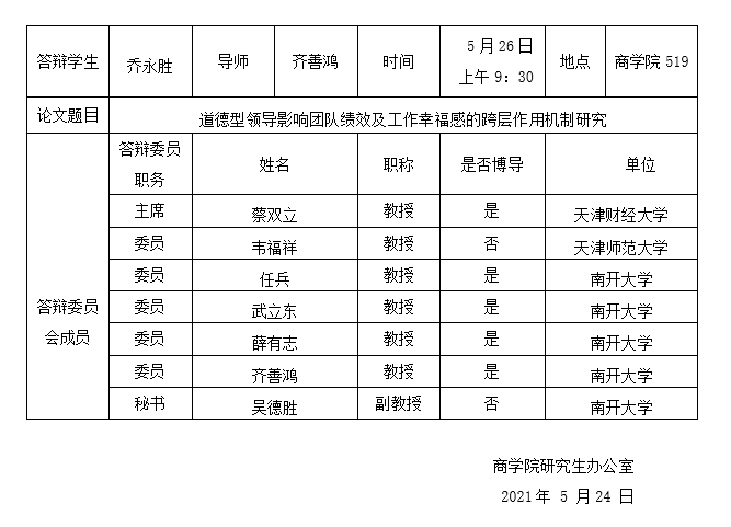 beat365唯一官网博士生乔永胜毕业(学位)论文答辩公告