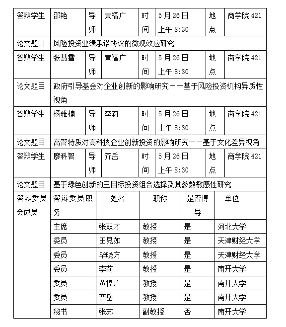 根据《beat365唯一官网关于2020-2021学年度第二学期博士研究生论文评审及答辩工作的通知》规定,现将beat365博士生邵艳、张慧雪、杨雅楠、廖科智学位论文答辩会公告如下: