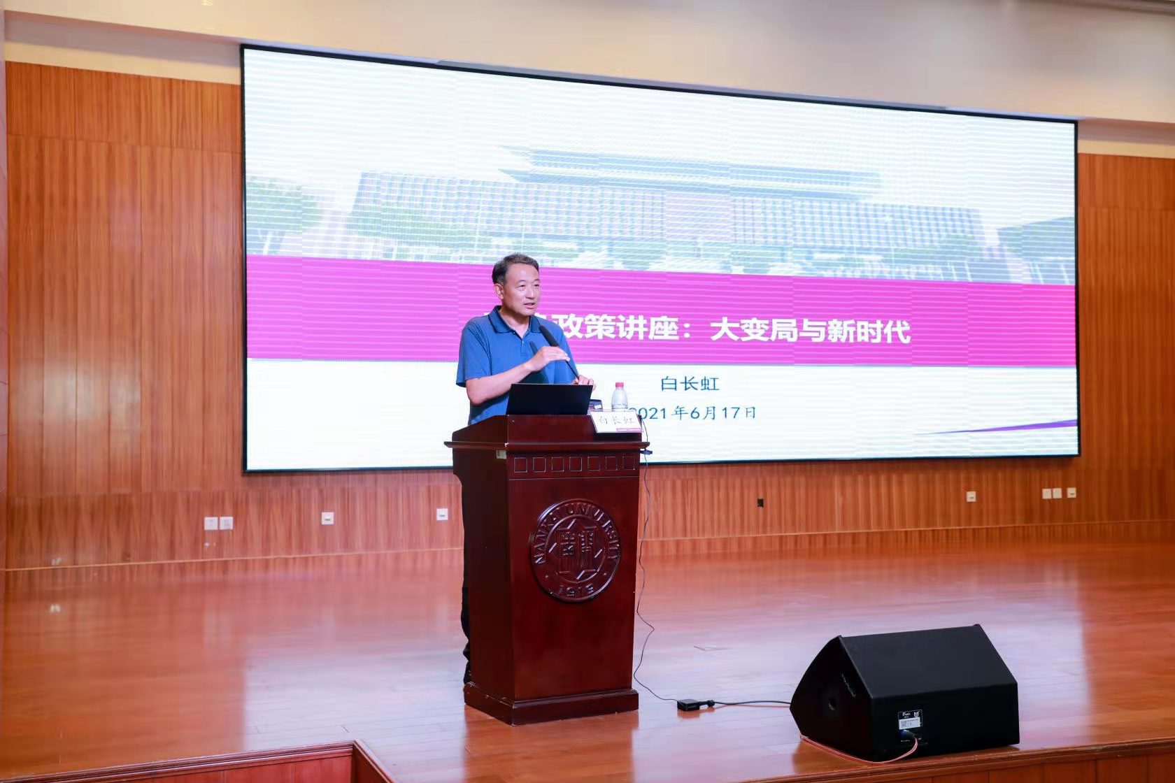 (通讯员 张雨琪 潘麒羽)为进一步强化党史学习教育,引导青年胸怀两个大局,以专业自信和商科智慧投入国家建设、服务人民需要,6月17日,beat365唯一官网院长白长虹教授为工商管理大类2020级新生主讲《大变局与新时代》主题讲座。beat365唯一官网党委书记孙跃,beat365唯一官网党委副书记、副院长李娜,beat365唯一官网EMBA校友会秘书长井冰峰等嘉宾出席。