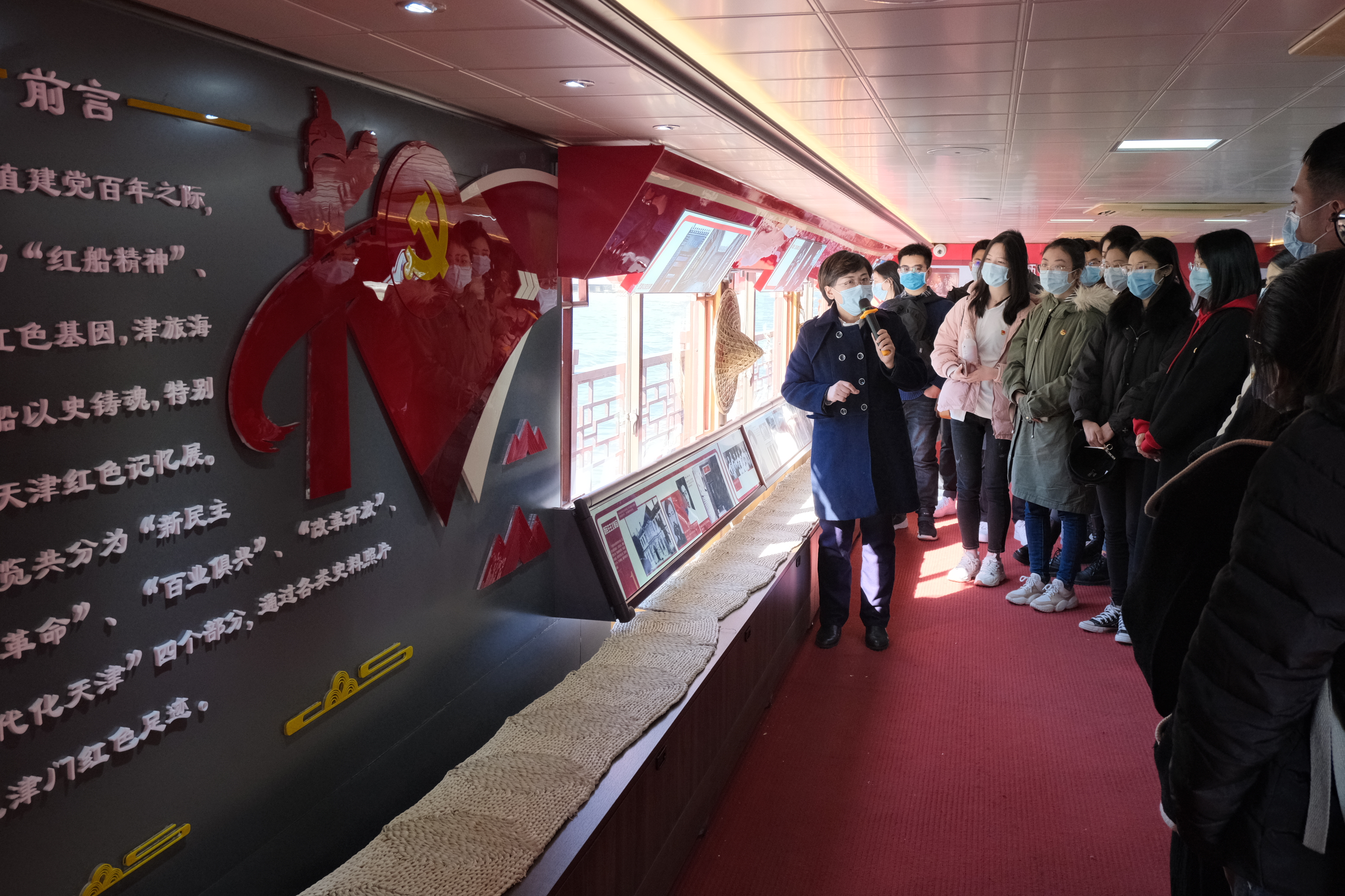 (通讯员 张翔宇 毕媛)为加强党史学习教育,感悟和传承伟大的建党精神,beat365唯一官网充分用好红色资源,教育引导师生导员赓续红色血脉,做到学史明理、学史增信、学史崇德、学史力行。近日,beat365唯一官网学生党总支组织新生党员和党员骨干赴海河游船流动展馆参观“海河上的天津红色记忆展”。