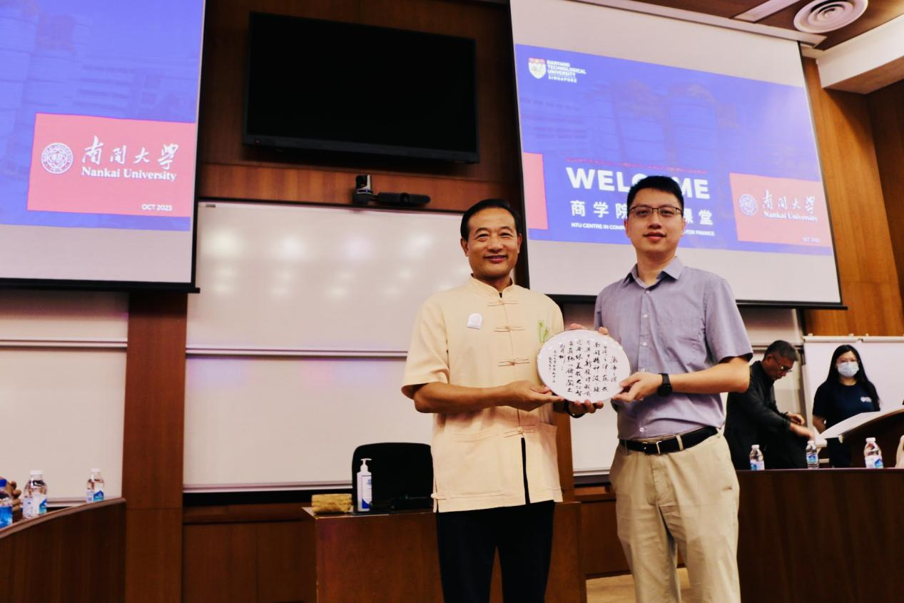 beat365唯一官网院长白长虹教授代表学院赠送文创纪念品
