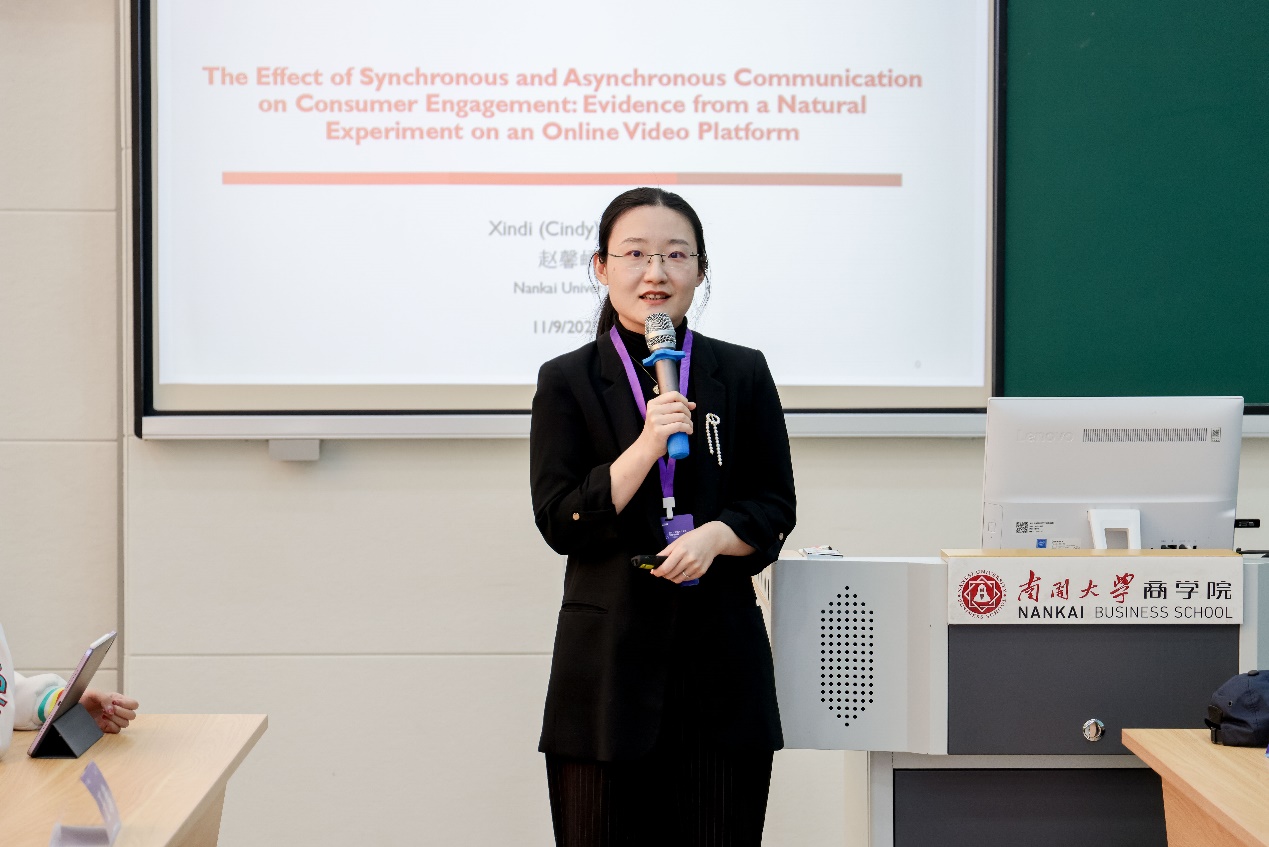 罗欣教授以“人工智能直播电子商务中不完美推荐对客户决策的影响:基于期望违反视角的混合方法研究”为题,分享了关于新人工智能时代下电子商务发展的独特见解。他提到:基于AI的非完美推荐还有一个长足的发展。整个企业怎么利用虚拟人物等这些AI技术以及新的营销方式,去帮助企业去提高他们的竞争力,是一个重要的问题。他分享了三个有关不完美推荐的研究问题,同时展示了具体的研究方法。