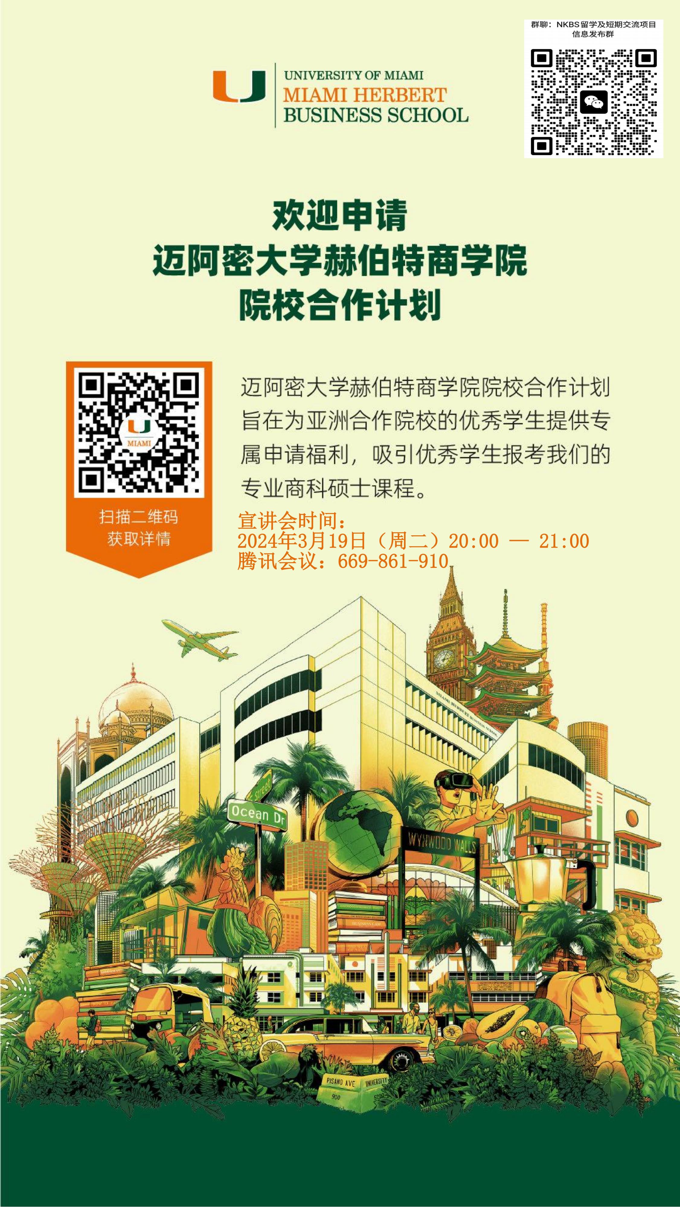 迈阿密大学赫伯特beat365唯一官网院校合作项目线上宣讲会
