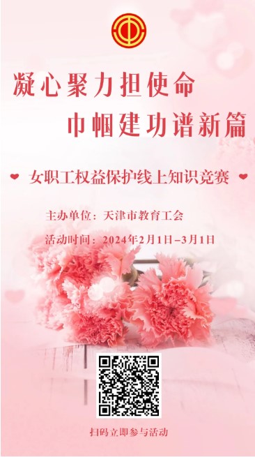 关注“天津教工”微信公众号,点选“巾帼竞赛”栏目,或直接扫描活动推文二维码,进入专题活动,填写姓名,选择正确所属基层工会即可参与。