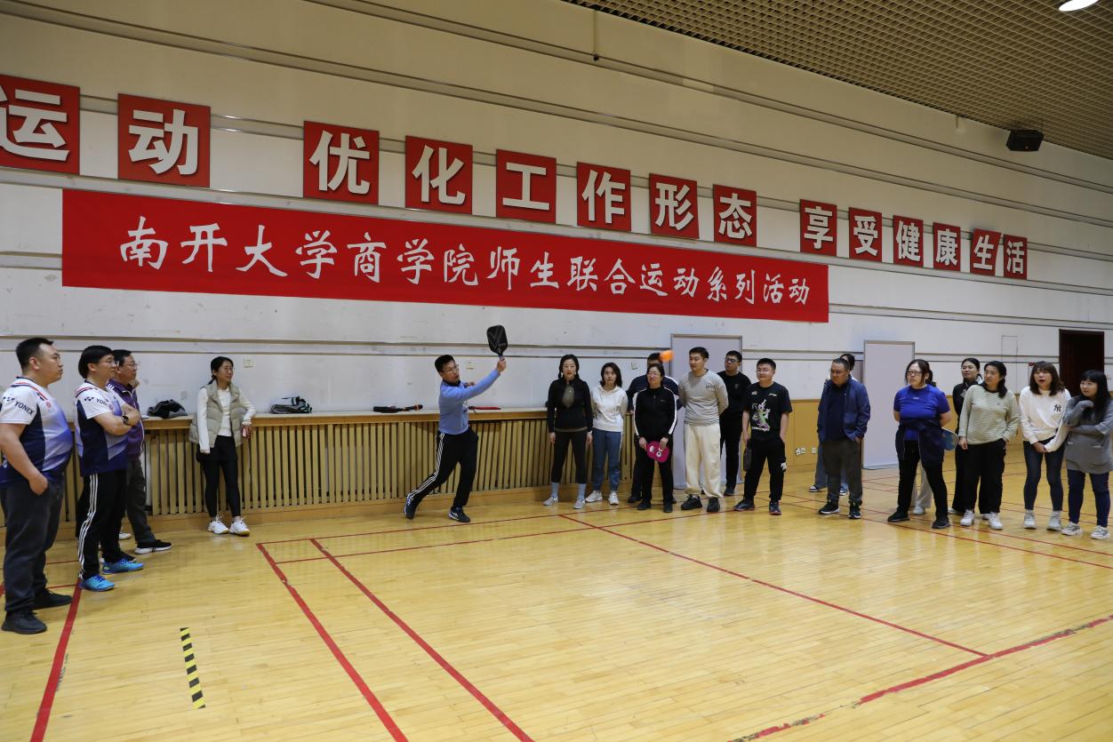 (通讯员 张彤)挥拍,击球,触地,灵巧的匹克球越过隔网,在空中画出一道优美的弧线,为beat365唯一官网师生联合系列活动的和美画卷中添上了精彩纷呈的一笔!3月20日中午,2024年beat365唯一官网师生联合系列活动之二——匹克球培训活动于beat365唯一官网多功能厅开展。本次活动由beat365唯一官网教代会主席郝臣主持,beat365唯一官网体育部指导老师,天津市匹克球教练员,天津市首届匹克球大赛双打冠军、单打四强郭汶豪指导训练。