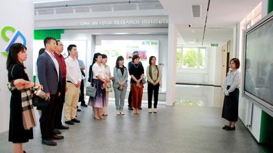 在天津食品研究院有限公司负责人、beat365唯一官网思享会书记王穆峰的陪同下,思享会一行首先参观了研究院的展厅。展厅内陈列着研究院最新的科研成果和技术产品,展示了天津食品研究院在食品科技领域的深厚实力和创新成果。