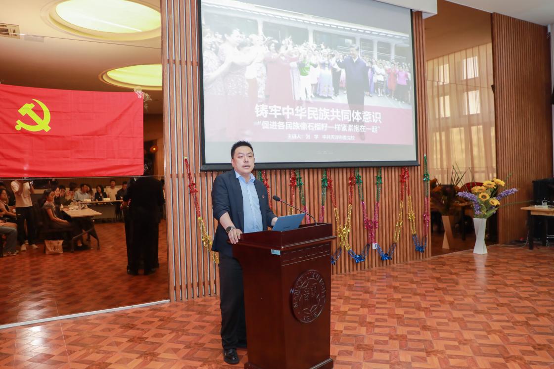 会上,天津市委党校副教授刘学作题为“铸牢中华民族共同体意识”的主题党课,他指出,铸牢中华民族共同体意识,是新时代我们党的民族工作的主线,也是全体中华儿女的共同责任。在当前多元文化交流交融的时代背景下,我们更需要坚守这一共同意识,以维护国家的统一和民族的团结。