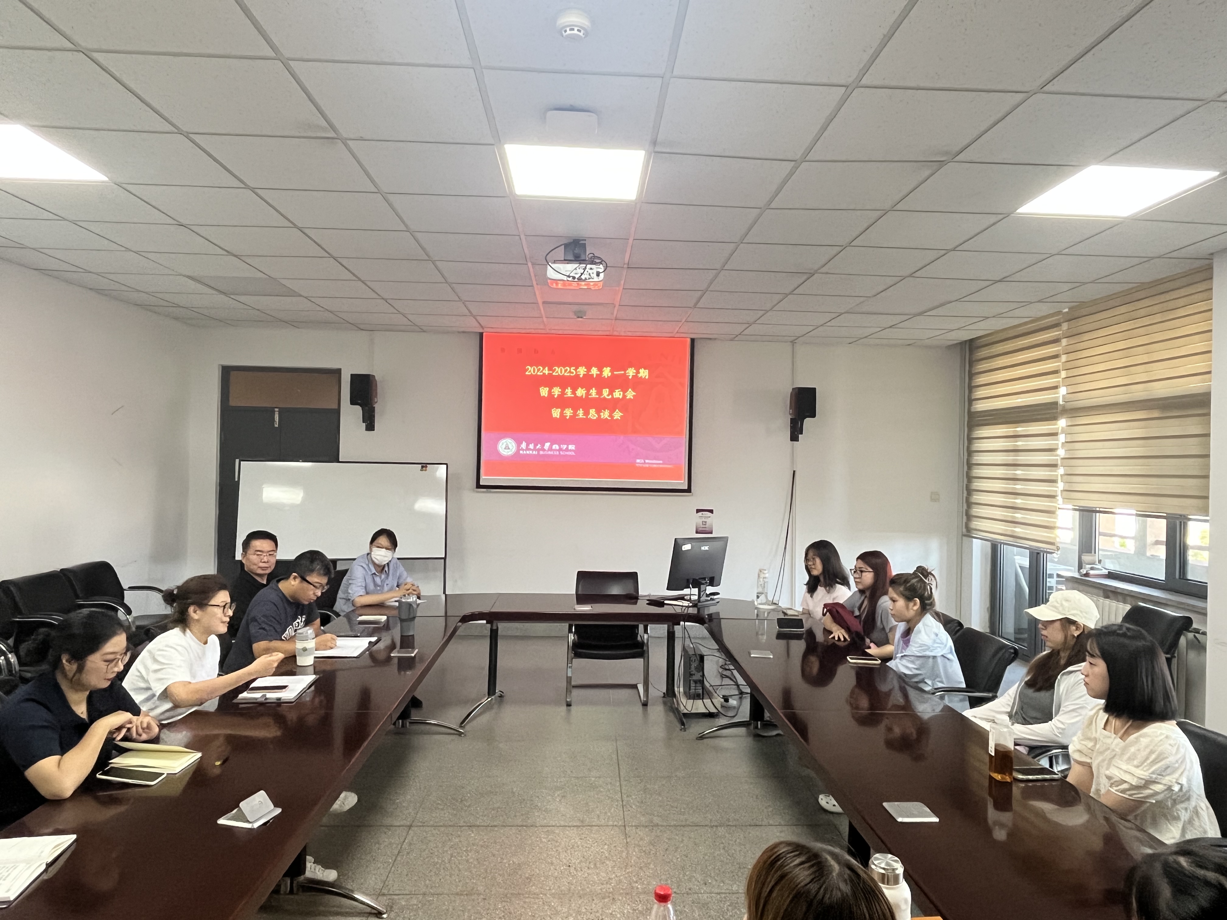 会议由国际交流与认证办公室负责人陈老师主持,他向学生们介绍了参会老师,总结上一年度留学生工作要点及未来的工作设想。田莉副院长对来自世界各地的留学生新生加入beat365唯一官网大家庭以及老生新学期的回归表示欢迎,她简要介绍了学院的教学资源及国际化成果,强调:“beat365唯一官网始终秉持开放包容的教育理念,致力于为每一位留学生提供优质的学习环境和丰富的文化交流机会。相信留学生的加入将为学院注入新的活力与多元色彩。”本科教学办公室负责人李东元老师及研究生办公室负责人周轩老师重点介绍了学院在留学生教学方面的情况及注意事项。