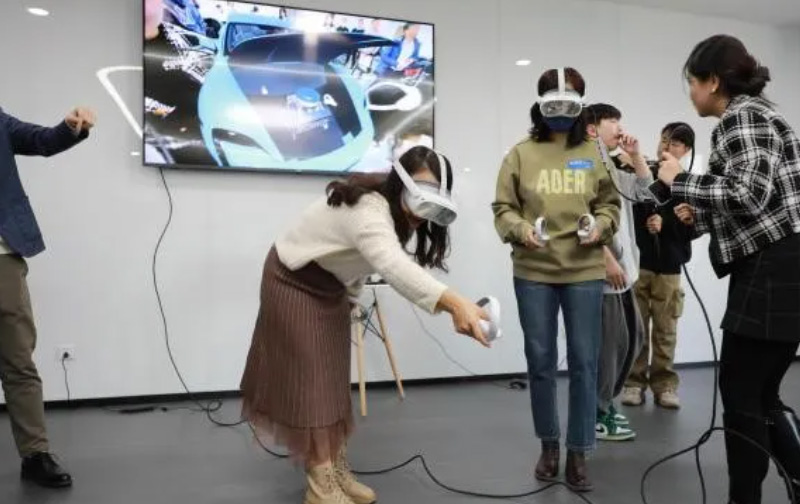 在工作人员带领下,同学们来到企业的项目展示长廊,壹刻校园品牌创始人张总亲自为大家介绍了壹刻校园的平台项目分类以及场景打造。当前壹刻校园一方面依托企业成熟项目平台,与学校、教育机构及其他高教单位建立合作关系,并为其他项目引流;另一方面聚焦了虚拟技术的教学价值挖掘,利用积累的用户数据打造前沿高教工具,为用户提供更深入的内容和体验。