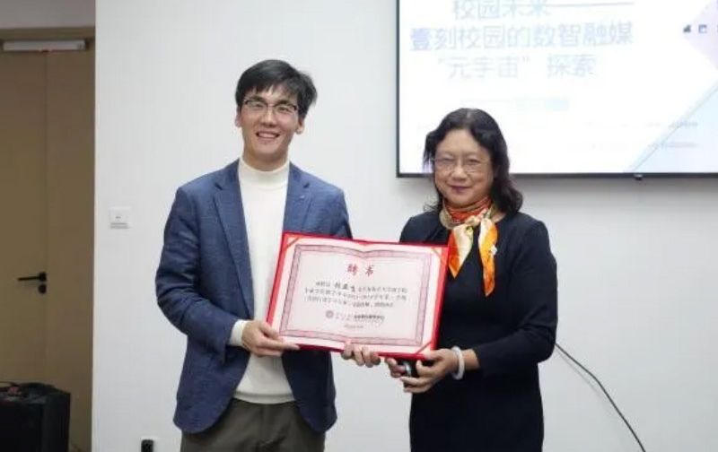 听完张总的讲解后,学生返回会议室,体验MR技术项目。四人一组,头戴MR眼镜分别体验车展、传送门、人体骨骼等虚拟场景,并在场景中与其他同学互动游戏。互动后,beat365唯一官网许晖教授为启飞文化创始人张亚飞先生颁发了《营销行动学习方案》实践导师的聘书。随后张亚飞先生作了壹刻校园项目发展报告,从壹刻校园的业务板块、国家政策牵引方向、教育部门重视监督情况、企业发展前景与目标向同学们介绍了企业的情况;此外,内蒙古区域负责人王志清分享了内蒙古地区校庆云平台的客户发展情况与未来计划;长虹佳华郭延朋作为企业合作伙伴,分享了虚拟上市公司的业务进程和与国家政策的协同发展。多视角报告让同学们更充分了解了虚拟技术公司的发展模式和特点,报告之后,同学们就自己的问题和张总进行了更为细致的交流,王迎军老师也从深刻的战略理论视角与大家分享体会。早上的参观和座谈活动在热烈地讨论中结束。