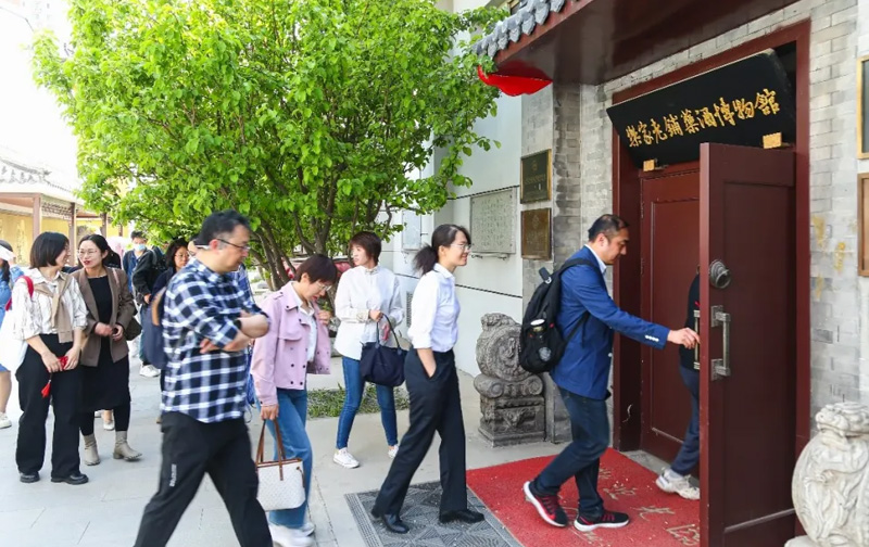 首先,工作人员带领同学们参观了厂区杏林、典故长廊和乐家老铺药酒博物馆。杏花树下,同学们领略着《虎守杏林》、《橘井泉香》等济世救民的典故渊源;典故长廊前,同学们浏览着千百年历史传承的卫药经过。软膏剂、胶囊剂、酒剂等八个中药剂型,十五个自主知识产权品种,两个非物质文化遗产,使京万红成为拥有世代传承和记忆的中药老字号企业。乐家老铺药酒博物馆中,同学们感受着京万红在传统药酒方面拥有的深厚底蕴。药酒博物馆占地面积达1000平米,集药酒生产、药酒文化、艺术品创作、中医药文物收藏、参观品购五位一体。药酒工坊作为国内第一家以药酒为主题的博物馆,通过实物、文献、图片、资料、器具、彩塑、影像等形式,形象地展示了药酒的发展进程、独特功效和文化底蕴。