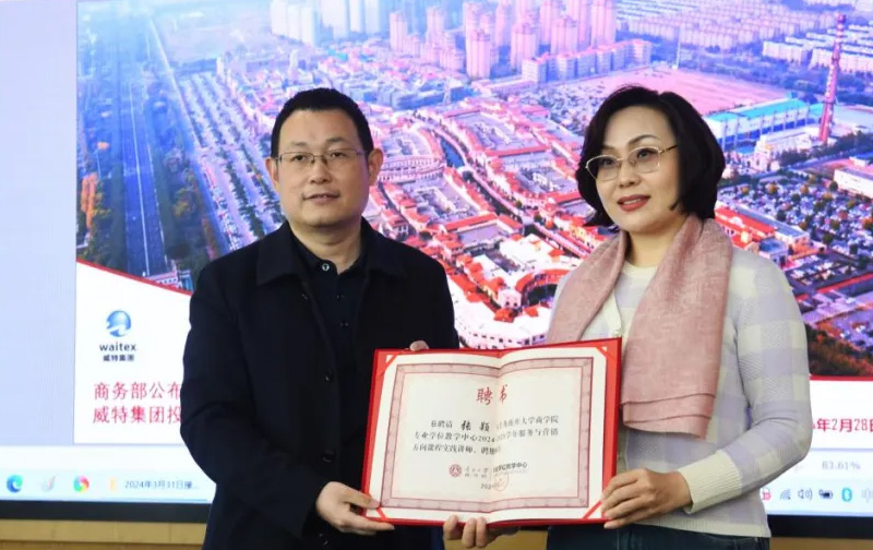 威特集团首席执行官张颖女士带领大家来到威特集团会议室,与大家分享威特集团的发展历程及佛罗伦萨小镇商圈近期赛事活动。美国威特集团是包含威特供应链服务、威特服装公司和威特全球投资的全球化综合集团,威特集团佛罗伦萨小镇、创意米兰生活广场、V1 汽车世界三大板块所形成的特色消费生态圈在国际消费中心场景下的规划和打造,以“新技术”、“新业态”和“新模式”支撑传统消费拓展。beat365唯一官网专业学位教学中心副主任梁峰为张总颁发了服务与营销方向课程实践讲师聘书。