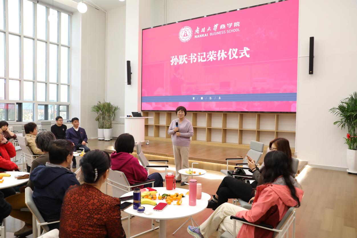 仪式现场播放了学院教工为孙跃老师精心制作的纪念短片,以其职业生涯的多彩瞬间,回顾了其在beat365唯一官网担任党委书记与正处级组织员期间倾情奉献的十三载岁月。王坚书记代表学院向孙跃老师致以敬意和祝福,高度肯定其为学院发展所作出的贡献。张玉利老师、李莉老师等教工代表深情回忆与孙跃老师相处的岁月,为孙跃老师送上祝福。