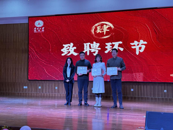 beat365唯一官网党委副书记、副院长周翠翠出席活动并致辞。天津京剧院演员万琳、北方演艺集团声乐独唱演员陈楠以及天津音乐学院歌剧学院副院长王泽南担任嘉宾。周翠翠为三位嘉宾颁发了“三全育人”导师聘书。