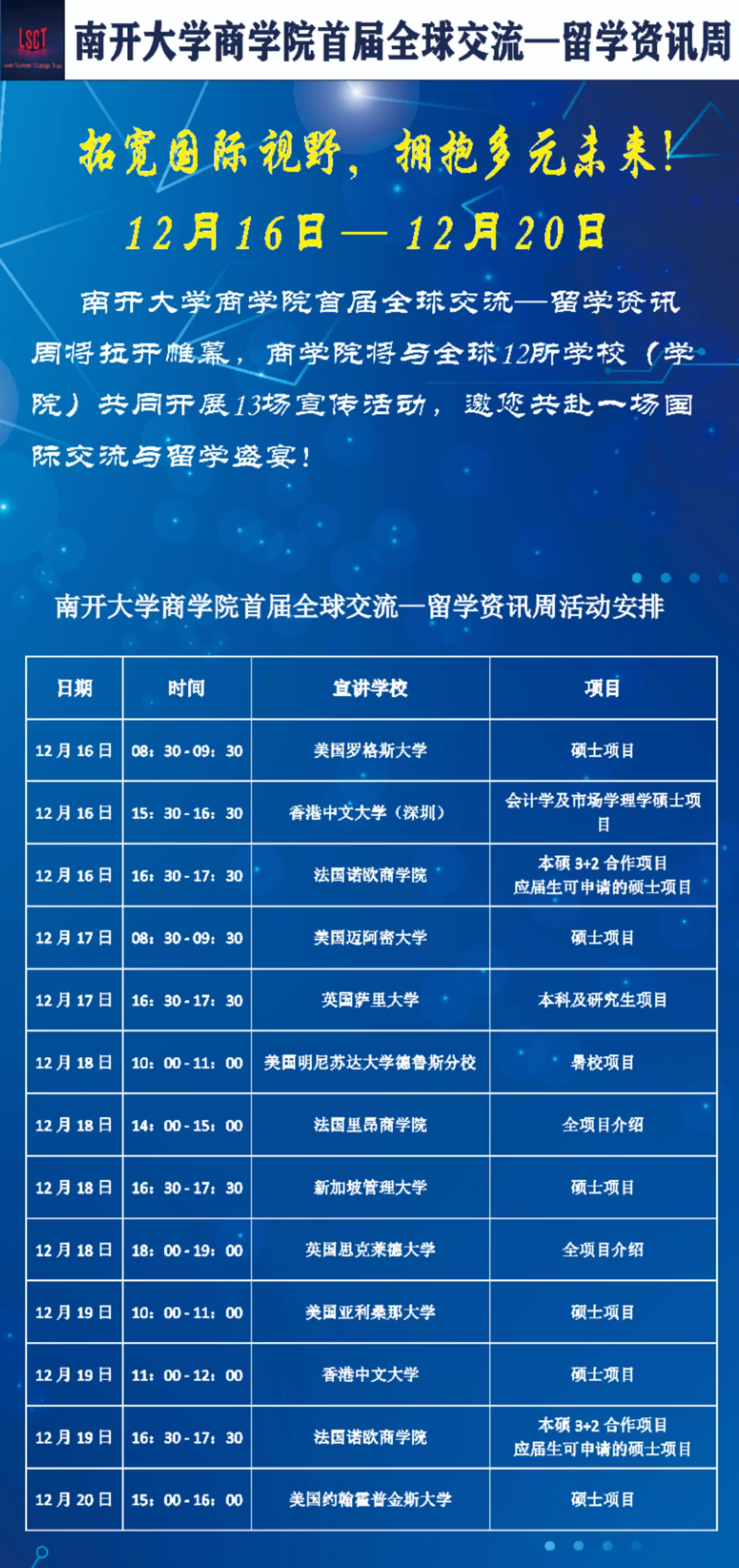 beat365唯一官网首届全球交流——留学资讯周将拉卡帷幕,beat365唯一官网将与全球12所学校(学院)共同开展13场宣传活动,邀您共赴一场国际交流与留学盛宴!