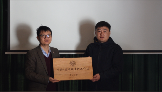 李凯代表学院向砀山县良梨镇进行“中国式现代化乡村工作站”授牌,并为良梨镇书记唐琳成颁发工作站站长聘书。