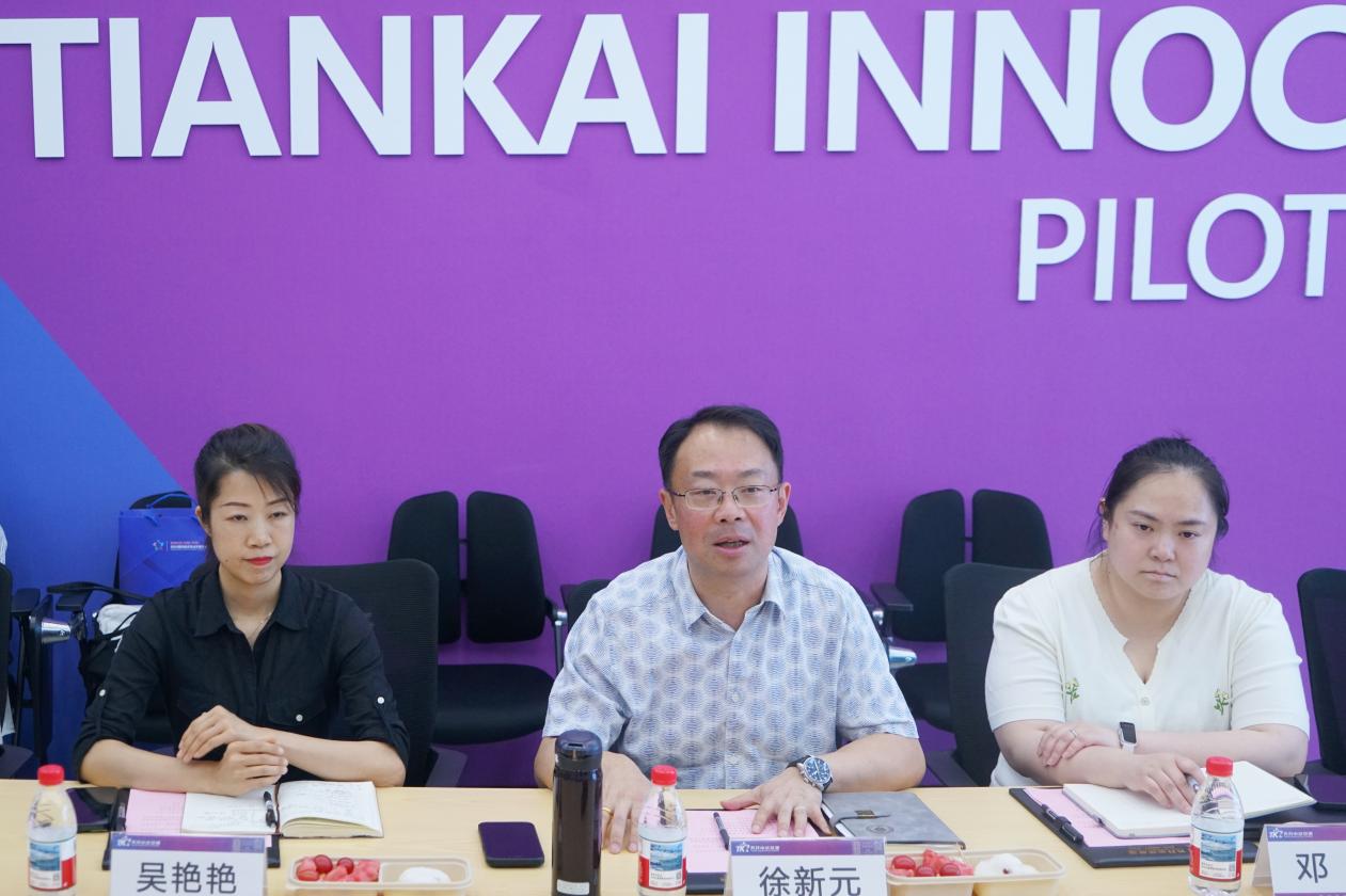 调研中,基地负责人徐新元博士系统介绍了平台建设背景与战略定位。天开中试基地依托天津市重点规划的天开高教科创园核心区,通过政府专项投入完成系统性升级改造,目前已集聚多家新型研发机构和科技企业。基地通过构建技术验证、产品试制与产业对接的一体化服务链条,着力破解科研与市场之间的转化瓶颈,形成高校成果与产业需求的精准匹配机制。