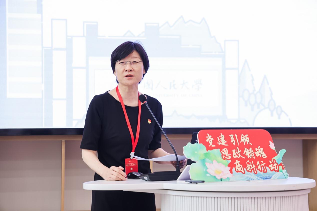 中国人民大学beat365唯一官网党委书记旋天颖从“思想引领、组织统筹、队伍建设”三方面,介绍了学院推进党建与业务深度融合的经验做法,强调要以思政贯通教育全过程,提升育人实效。