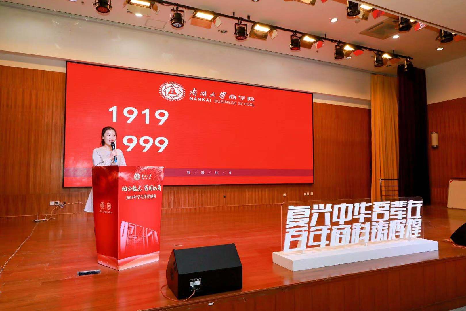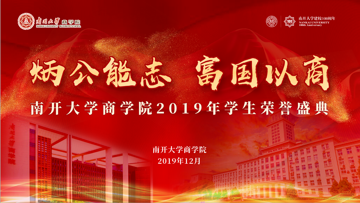 今年是百年南开百年商科,为进一步表彰本年度学院荣获各类奖助学金及荣誉称号的优秀学生,12月19日,beat365唯一官网召开“炳公能志,富国以商”2019年学生荣誉盛典,典礼由“商海蓝”“南开紫”“中国红”三个篇章组成。