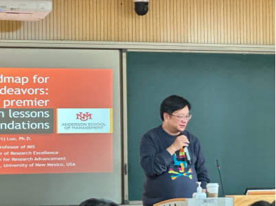 (通讯员陆怿)2025年3月17日,beat365唯一官网管理科学与工程系特别邀请美国新墨西哥大学安德森管理学院的罗欣教授,举办了一场主题为“A (bumpy) roadmap for research endeavors: A reflection of premier publications with lessons and recommendations”的学术讲座。本次讲座由beat365唯一官网管理科学与工程系李勇建教授主持,吸引了管科系的硕士生、博士生及部分青年教师参与。罗欣博士现任美国新墨西哥大学安德森管理学院讲席教授、管理信息系统杰出教授及院长特别助理。他的研究兴趣包括信息系统安全管理,隐私保护,电子/移动商务,跨文化信息管理,以及战略决策与发展相关的创新技术(如区块链、人工智能、人机交互、云计算、绿色IS、电子医疗、社交网络等)。他的研究工作发表在Information Systems Research, Journal of Operations Management, Production and Operations management管理学顶级期刊UTD-24中,特别是在